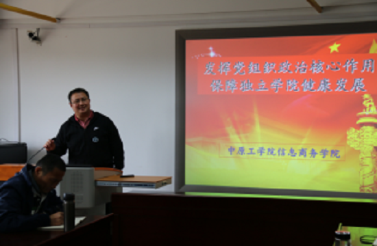 中原工学院信息商务学院党务工作部部长田华泉同学以《发挥党组织政治核心作用,保障独立学院健康发展》为题目,主要讲述了在其所在信息商务学院中发挥党组织政治核心作用探索与实践。他的分享让我们认识到了为确保独立学院正确办学和健康发展,党组织必须参与决策、拥有用人话语权、保证监督、思想引领并加强基层建设。