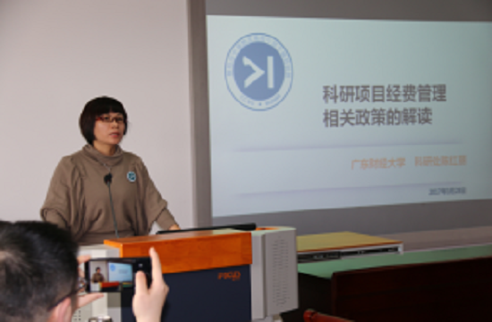 广东财经大学科研处副处长陈红丽分享的题目是《科研项目经费管理相关政策的解读》,她首先回顾了近年来国家及各省市区对科研项目经费管理相关政策的出台及调整缘由,然后以广东省为例,对最新政策的改革事项、亮点一一做了称述,并与其他省市区相应政策调整进行了横向比较,从目的、关键、放权和监管这四个方面对最新政策调整进行了解析。 她的分享帮助同学们及时了解了最新政策,对同学们如何能够在今后正确申报和使用科研项目经费具有很好的指导意义。