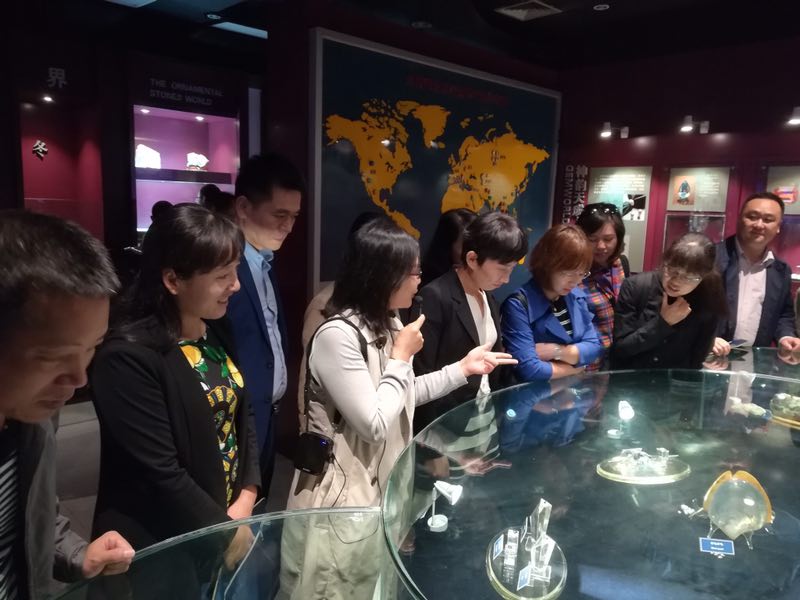 在地大地空学院李周波副书记的带领下,全体参访学员首先来到中国地质大学(武汉)博物馆参观。李副书记及讲解员向参访学员介绍了博物馆的基本情况,博物馆内主要有地矿标本展览和地学陈列展览,近距离目睹了来自全国各地以及世界部分国家的化石、矿物、岩石、宝玉石、矿石、地质构造等珍贵地质标本,其中不乏自然界罕见的精品,如著名的黑龙江东北龙、和平永川龙、鹦鹉嘴龙等恐龙骨架化石以及各种珍贵的矿物、宝玉石、化石标本等,其丰富性、典型性、观赏性在国内居于一流水平,部分藏品在世界上位居首位。据悉,地大博物馆也是全国科普教育基地、全国青少年科技教育基地、全国古生物教育基地、武汉市爱国主义教育基地。