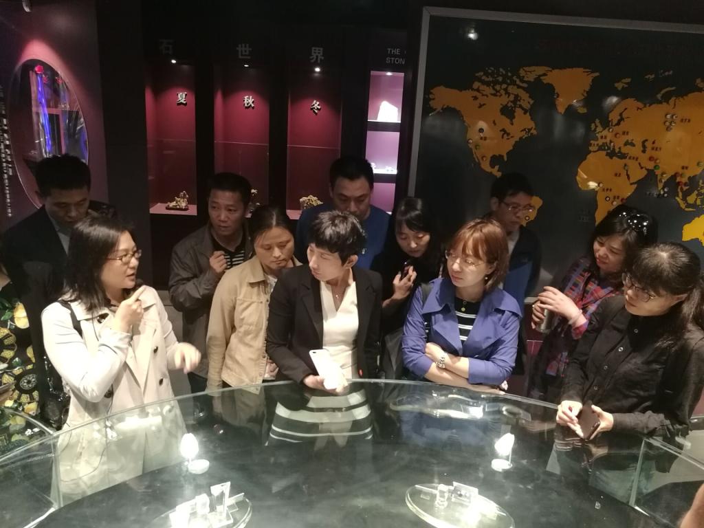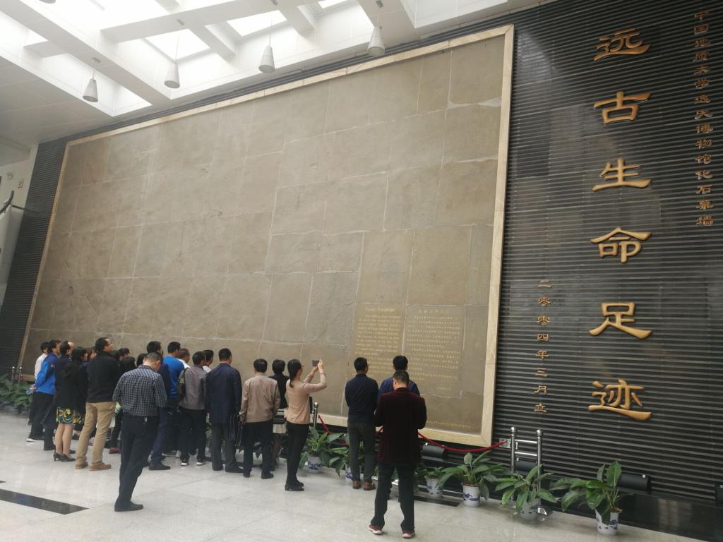 在地大地空学院李周波副书记的带领下,全体参访学员首先来到中国地质大学(武汉)博物馆参观。李副书记及讲解员向参访学员介绍了博物馆的基本情况,博物馆内主要有地矿标本展览和地学陈列展览,近距离目睹了来自全国各地以及世界部分国家的化石、矿物、岩石、宝玉石、矿石、地质构造等珍贵地质标本,其中不乏自然界罕见的精品,如著名的黑龙江东北龙、和平永川龙、鹦鹉嘴龙等恐龙骨架化石以及各种珍贵的矿物、宝玉石、化石标本等,其丰富性、典型性、观赏性在国内居于一流水平,部分藏品在世界上位居首位。据悉,地大博物馆也是全国科普教育基地、全国青少年科技教育基地、全国古生物教育基地、武汉市爱国主义教育基地。