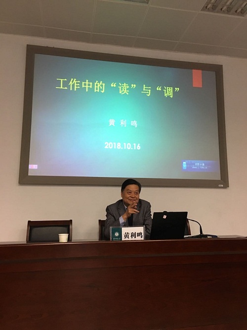 黄利鸣院长从阐述领导干部的“调角色”的内涵和重要意义,强调领导干部要正确认识三重角色定位,即政治人、领头人、关键人,黄教授认为“读”有三个层次,读书、读无和读人,并重点从“读政悟道”、“读人知调”、“读岗修善”三个方面进行了解读,强调领导干部“三要”,即忠诚、担当、干净,讲解知人善用、读己知己的重要性和方法,领导干部要善“调”,调角色、调关系、调心态、调目标、调方式,做好领导干部,要“读”和“调”相结合。