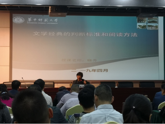 4月22日干训中心103室,中南班75期学员跟随华中师范大学博导、一级作家晓苏教授以“文学经典的判断标准和阅读方法”为题学习品味文学经典的方法,共同迎接第23个世界读书日。