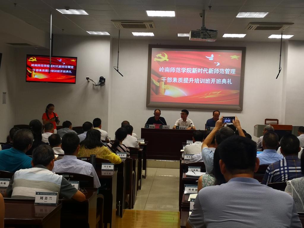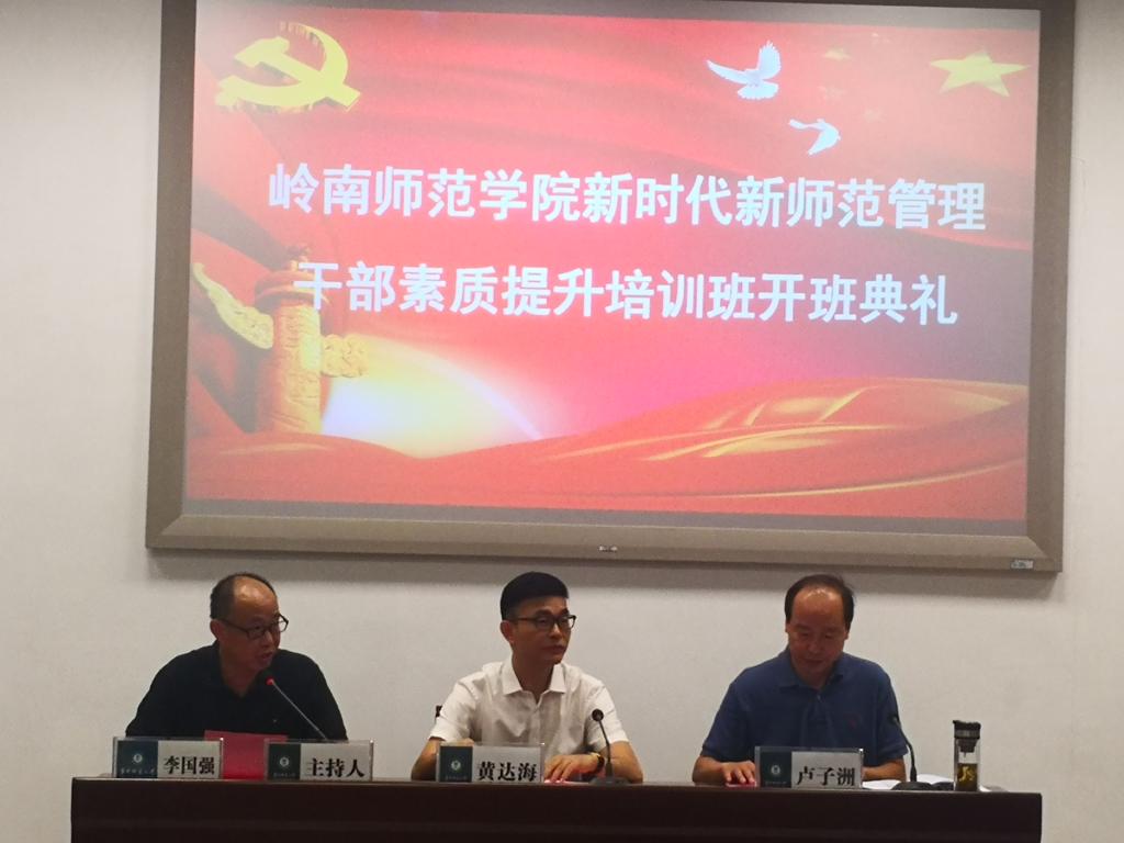 8月25日上午,岭南师范学院新时代新师范管理干部素质提升培训班开班典礼在我校管理教育综合楼202教室举行。岭南师范学院党委副书记黄达海,教育部中南教育管理干部培训中心(以下简称“中南干训中心”)常务副主任、华中师范大学培训中心主任卢子洲,中南干训中心办公室主任李国强等出席了此次典礼,开班典礼由李国强主持。