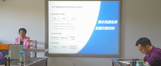 广东金融学院资产后勤管理处副处长江小琴老师则对广东金融学院根据本科教学审核评估要求就学校资产管理、后勤管理上为学校学科建设、人才培养、科学研究所提供的条件支撑及后勤服务保障,用翔实的数据及实景图片生动展示了其工作成果与亮点。