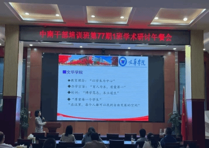 3月30日中午,中南干部培训班77期1班创新班级活动形式,在华中师范大学文华公书林四楼模拟联合国大厅举行学术研讨午餐会。