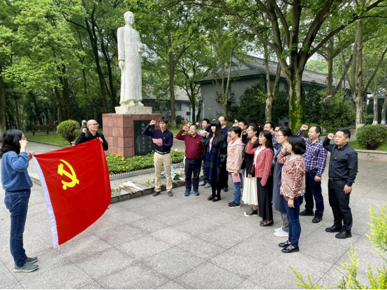 活动伊始,77期中南2班党支部书记苏江生带领全班党员在恽代英雕像前,面向党旗庄严宣誓:“我志愿加入中国共产党……”铿锵有力的字句,既表达了对“百年恰是风华正茂”的中国共产党的崇敬,也表达了对革命先烈的仰慕。