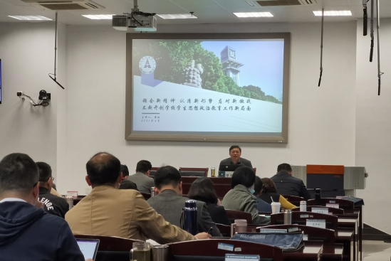 接着,覃校长从适应新形势,迎接新挑战着眼,认为高校学生思想政治教育工作发展中还存在以下的困难与不足:(一)学生思想行为分析与有效价值引导结合不够,思想政治教育工作需进一步加强学情研判和因材施教;(二)个性创新与合作共建结合不够,思想政治教育工作需进一步挖掘特色优势和推动合力育人;(三)理论教育与实践锻炼结合不够,思想政治教育工作需进一步加强学习教育和强化实践育人;(四)品德培育与心理教育结合不够,思想政治教育工作需进一步加强价值引领和培育健康心态;(五)课内教学与课外学习结合不够,思想政治教育工作需进一步健全课程体系和深化文化育人;(六)线上引导与线下工作结合不够,思想政治教育工作需进一步加强联网上线,增强时代感和吸引力;(七)组织管理与服务育人结合不够,思想政治教育工作需进一步优化队伍建设和强化育人实效。
