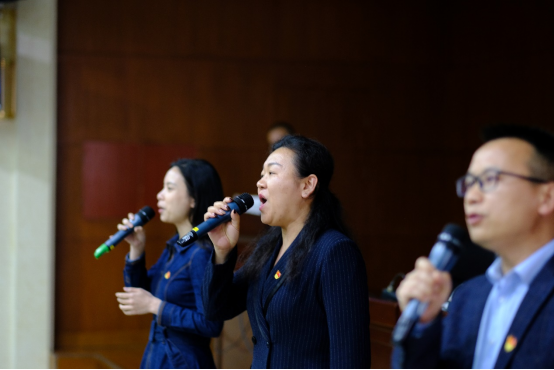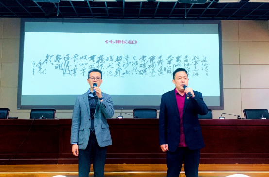 全体学员一起重温入党誓词。随后,由学员代表朗诵毛泽东诗词《七律·长征》,演唱歌曲《唱支山歌给党听》和《让我们荡起双桨》。代表们的精心准备和精彩演出,让全场爆发出一次次热烈的掌声。现场的学员们不由自主地跟着一起哼唱,共同回忆中国共产党艰辛求索的岁月。