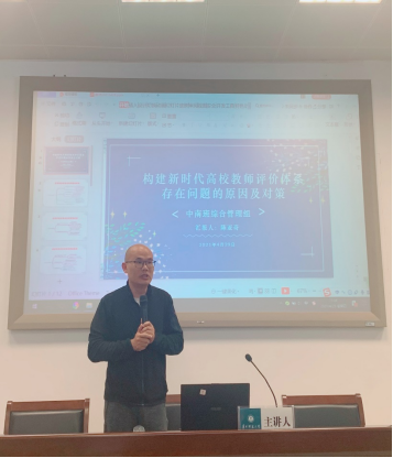 “综合管理组”汇报人由陈亚奇老师负责。该组的分享围绕“构建新时代高校教师评价体系存在问题的原因及对策”展开,首先定位“新时代”的时代体征,在此背景下分析总结出存在评价标准不健全、评价方式不科学、观念理念不匹配、教师发展支撑不够等问题的原因,并就每个问题产生的具体原因进行探讨和梳理,最后从完善评价标准、改革评价方式、变革观念理念、构建教师发展支持系统四个方面提出了针对性、有效性较强的对策。