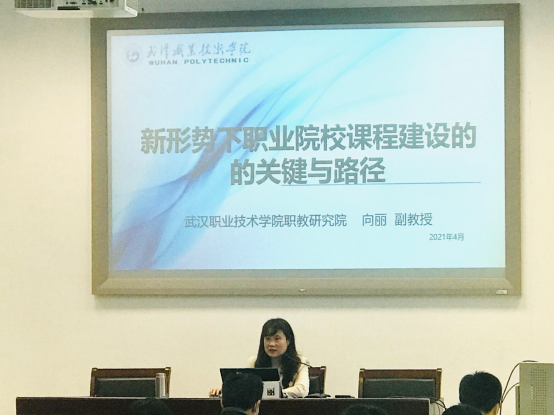 4月30日上午,武汉职业技术学院职教研究院向丽副教授,为中南77期培训班学员作题为“新形势下职业院校课程建设的关键与路径”的报告。报告由班主任王国德老师和学员何宇宏老师共同主持。