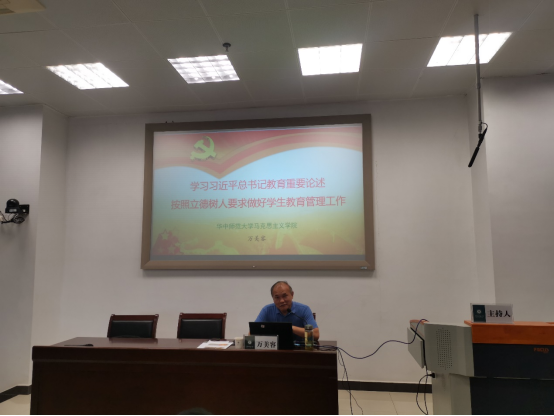 为了深入学习领会习近平总书记关于教育的重要论述,9月26日上午,教育部中南地区高校第78期中层干部培训班特邀华中师范大学马克思主义学院院长、博士生导师万美容教授,开展了题为《学习习近平总书记关于教育的重要论述 按照立德树人要求做好学生教育管理工作》的专题讲座,培训班全体学员认真学习了报告。