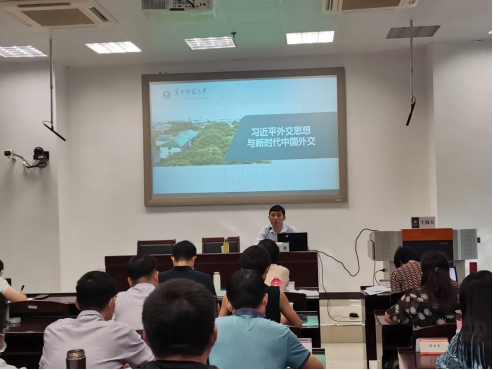 9月28日上午,教育部中南地区高校第78期中层干部培训班邀请华中师范大学政治与国际关系学院副教授陈菲在教育管理综合大楼202室作了题为《习近平外交思想与新时代中国外交》的专题报告。中南班78期全体学员参加了报告会,报告会由黄宝华副教授主持。