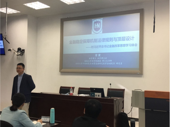10月9日上午,海南大学法学院教授、博士生导师、海南大学中国特色自由贸易港研究院常务副院长常健应邀为教育部中南地区高校第78期中层干部培训班作了题为《金融稳定保障机制法律规则与顶层设计—对习近平总书记金融改革思想学习体会》的专题报告。