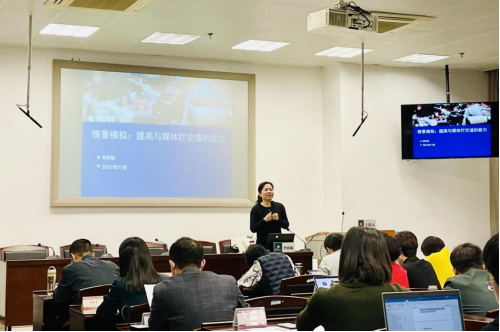 11月5日上午,湖北省委党校的李妙颜副教授为第78期中南班的全体学员作了题为《情景模拟:提高与媒体打交道的能力》的专题报告。