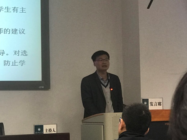 接着来自许昌学院的党委组织部副部长王鸿政做了题为《一图一例一句——小议高校教育工作者的从业境界》的演讲,他通过自己的亲身经历告诉大家教育不仅是一门科学,更是一门艺术,教育要科学体现规律,艺术彰显个性。他同时也提到教师不仅是教学机器,还要有教育情怀。
