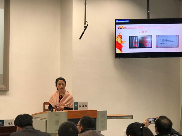 研讨会上,来自广西医科大学第二附属医院的党委副书记陈玉君首先做了题为《在基层党建中发挥身边榜样的一些体会》的演讲,她以自己所在的基层党支部建设过程中树立的榜样为例,强调在基层党建中如何树立榜样,并通过榜样带动周围同志共同进步。