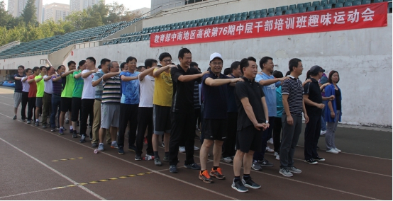 2019年9月29日下午,教育部中南地区高校第76期中层干部培训班趣味运动会在佑铭体育馆举行,班主任陈晨老师及全体学员参加了运动会。