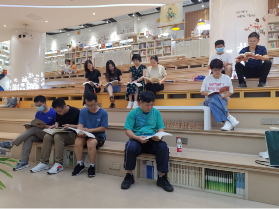 学员们从培训中心出发,沿着桂元路一路向北,进入桂北路后折向南,转到桂中路,然后寻桂东路返回培训中心。布满青苔的小路蜿蜒不知何方,高大的法国梧桐伫立行道两旁,郁郁葱葱的桂子山吐露着岁月的芳华。一栋栋新旧建筑依山势高地错落有致,展示着华师的博雅。走累了,大家在利群书社前驻足,历经百年的书社记录了华师人筚路蓝缕,以启山林的往事。升级改造后的利群书社文艺气质爆棚。在这闲暇的午后,大家拾级而坐,手不释卷。