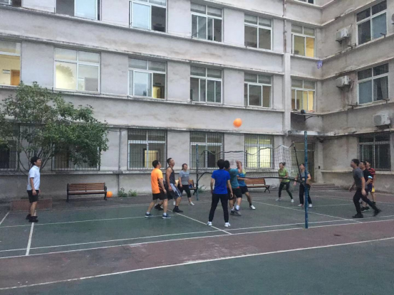 经过来自广西的气排球老将们“现场教学”,学员们新手马上变高手。大家轮番上阵,一决高下,气排球在空中轻盈跳跃,现场气氛随之高涨。近二十位同学分三个小组轮流上场,赛场热闹非凡。虽然比赛由于球员水平参差不齐而发生各种“意外”,但同学们笑声不断,加油声和欢呼声回荡在球场上空。赛后,大家表示意犹未尽,相约“择日再战”。