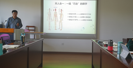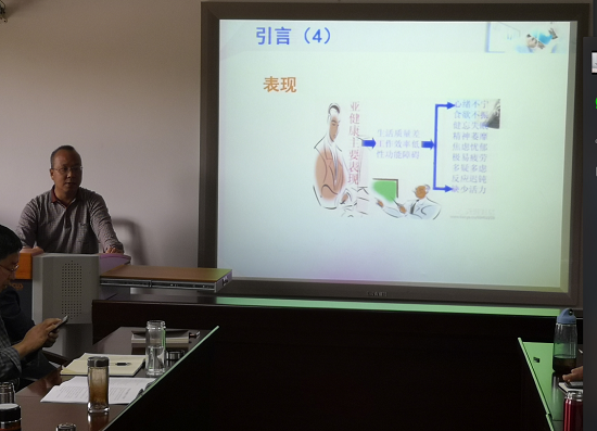 右江民族医学院临床医学院党委副书记陈文成老师为大家作了一个“爱自己,爱生活”的健康小讲座,结合教师常见的职业病,讲解了如何认识、预防及治疗相关疾病。