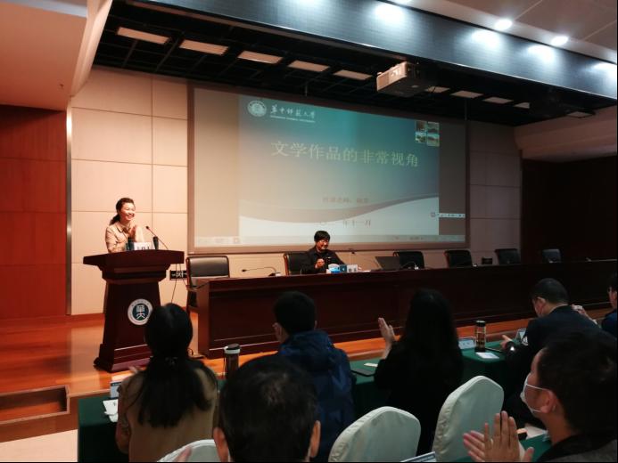 在报告会上,晓苏教授分别从小说创作的“傻瓜视角”“鬼魂视角”与“幼童视角”出发,结合迟子建《雪坝下的新娘》、余华《第七天》以及莫言《红高粱》等名篇名作,为大家展开抽丝剥茧、妙趣横生的解析与欣赏。