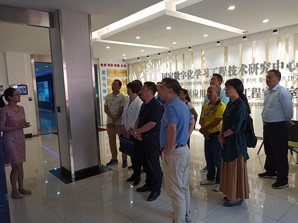 大家围坐在讲解老师周围,认真聆听中心情况的介绍,亲身体验了电子双板、多屏多点触控设备、流媒体服务等科技成果,对中心跟踪国际前沿科技、整合教育信息资源、打造数字媒体平台,提升教育信息化领域的技术创新能力及科技成果工程化研究和产业化转化水平赞叹不已。