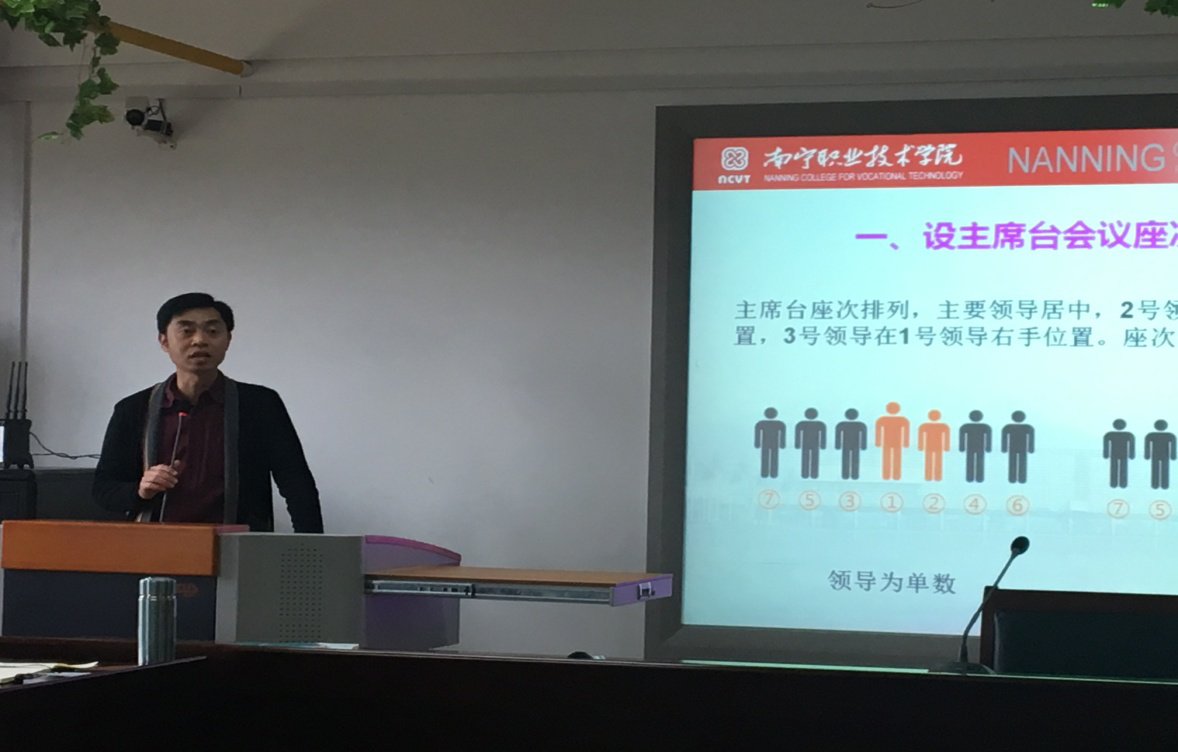 研讨交流会上,来自广西南宁职业技术学院的陆笛,通过生动的图表介绍了主席台、会客桌(沙发)、合影、宴席、乘车等不同场合的领导座次(站位)安排,丰富了学员的公务礼仪知识。来自郑州航空工业管理学院的姜运仓,围绕“台湾之于中国的重要性、影响台湾形势的因素”等方面,谈了关于台湾问题的研究与思考。来自广东财经大学的林聪,结合该校改革实践,从“专业设置、优秀生源地建设、寒假社会实践”等方面谈普通高校招生考试改革的应对策略。来自华中师范大学的杨万文,以“教学与科研,冲突、迷局与教师分类评价”为题,谈了高校教师评价存在的问题及方法等。来自广州美术学院的胡斌,介绍了该校以美术馆为平台,讲好广东美术的故事的生动实践。来自华南师范大学的何小静,以“一名高校青年海归办事难”的案例分析,阐述了高校财务工作的现状及新时代要求和挑战。