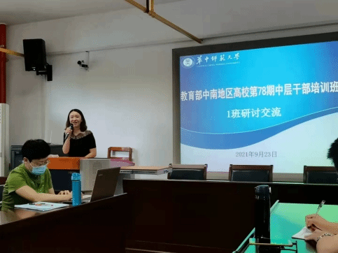 秋高气爽,金桂飘香。2021年9月23日下午,78期中南1班全体同学齐聚在华中师范大学管理教育综合楼4楼会议室,开展了第一次研讨交流活动。5位学员根据自身实际情况,在“学员讲坛”“课后思辨”“管理故事赏析”的不同研讨类型中选择了相应的研讨主题进行分享和交流,本次研讨活动由班级学习委员蒋莹主持。