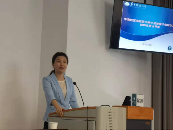 10月12日下午,教育部中南教育管理干部培训中心组织78期中南班全体学员进行“结构化”思维学习研讨活动。陈雪玲副主任现场指导,为学员们讲授了“结构化”思维以及研讨的内涵和方法,让学员们领略到结构化研讨的魅力。