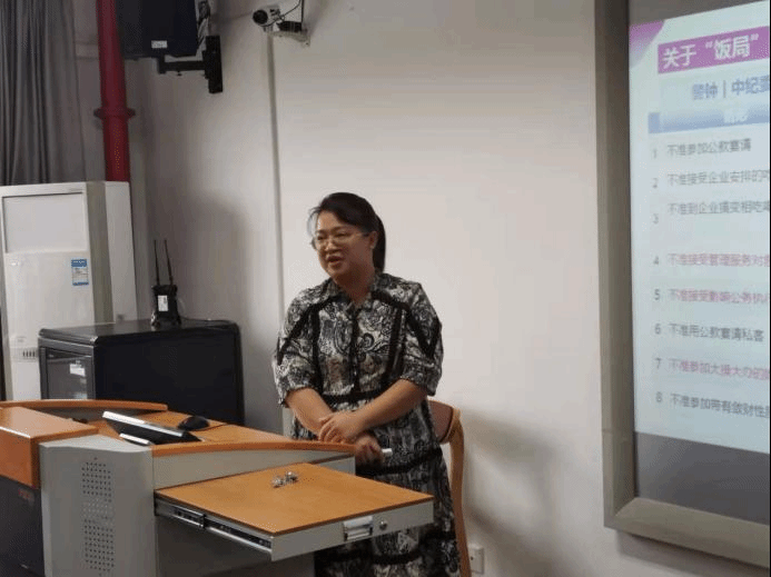 来自广西师范大学的学员黄琳以《敬畏法纪警钟长鸣》为题,通过深入剖析多个违纪违法典型案例,以案说理,以案警示,辅导学员准确理解把握中央八项规定精神和监督执纪“四种形态”,提醒学员守纪律、讲规矩、明底线、知敬畏。