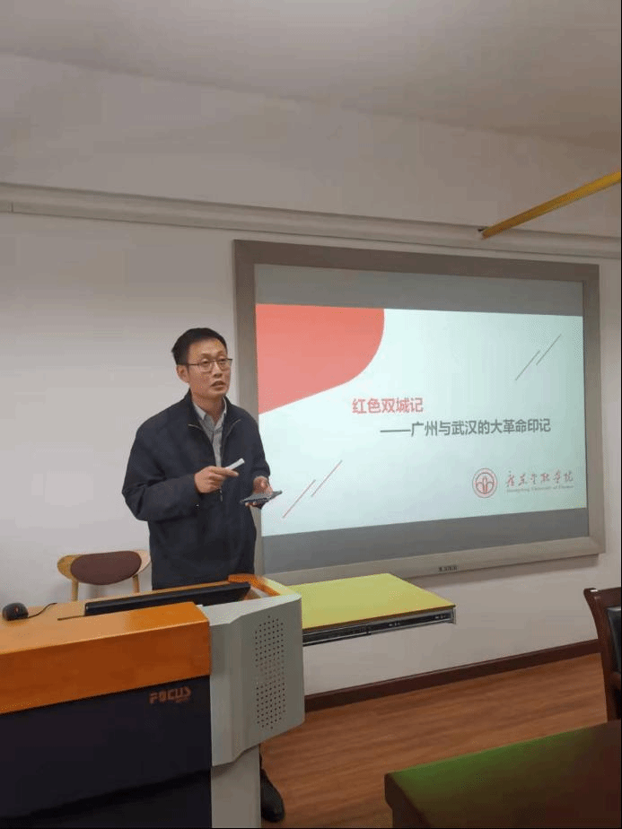 来自广东金融学院的学员欧江以《红色双城记》为题,介绍了广州与武汉大革命时期的历史遗址,借助红色历史故事带入,实现了历史情景再现,引导学员拉近与党史的距离,点燃大家学党史的热情。