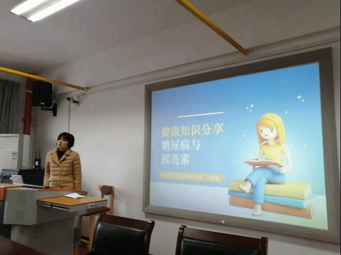 来自广东食品药品职业学院的学员赵骏以《糖尿病与胰岛素》为题,介绍了人体血糖的来龙去脉以及胰岛素与血糖的关系,介绍了糖尿病的诊断、症状和危害,并以教育、心理、饮食、运动、药物、监测、预防“七”步健康走,为科学管理糖尿病支招。