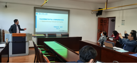 广西科技大学孙有平学员以《校企协同推动汽车产业人才培养的探索与实践》为题,以广西科技大学“广西智能车辆(制造)与新能源汽车产业学院”的建设为案例展开分析,详细介绍了现代产业学院的建设背景、目标定位、育人模式及建设成效、未来发展目标等,使学员们了解了广西科技大学在汽车类产业人才培养方面的办学特色与具体经验。