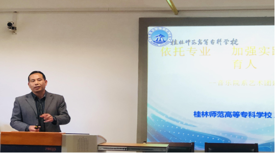 桂林师范高等专科学校周宪斌学员以《依托专业加强实践服务育人》为题,以桂林师范高等专科学校音乐系的艺术团建设为案例展开分析,介绍了音乐系艺术团设立的原因、意义、目的、类型及发展概况,分享了维持艺术团活动和正常运作的措施,并以这个案例剖析了高校艺术团生存和发展的深刻启示,使学员们体会到了桂林师范高等专科学校音乐系艺术团在人才培养、服务地方、融合专业等方面所做的贡献和成就。