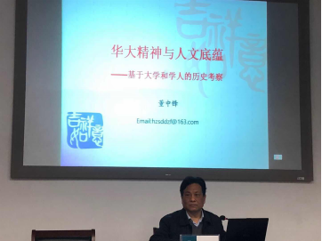 2018年3月7日,在教育部中南教育管理干部培训中心,华中师范大学董中锋教授为教育部中南地区第73期高校中层管理干部培训班授课,授课的题目为《华大精神与人文底蕴》。
