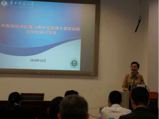 教育部中南地区高校第76期中层干部培训班在进行了一个月的报告、讲座、班级交流培训后,进行了一次富有意义的结构化研讨。研讨会于10月15日下午在培训中心教室内举行,具体采取了集中和分开讨论的形式进行研讨。