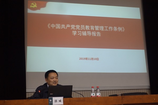 11月10日上午,中央组织部党员教育中心一处副处长郭威为全国高校教师党支部书记“双带头人”高级研修班作了题为《学习贯彻<中国共产党党员教育管理工作条例>,切实做好新时代党员教育管理工作》的主题报告。