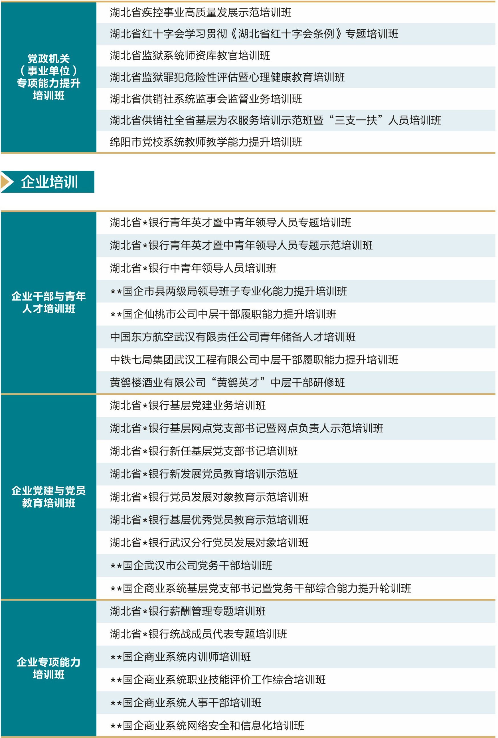 受送培单位委托,近年承办过以下主题班次;2026年,部门将继续充分发挥干部党员培训高校基地作用,积极承办各类主题班次,培训范围包括(但不仅限)以下方面: